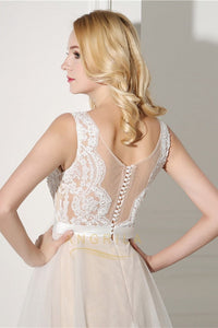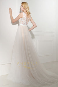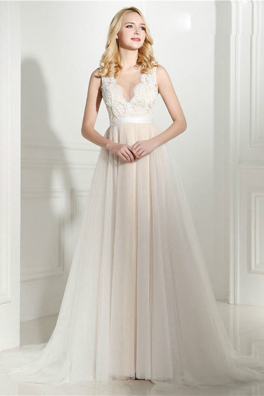 A-Line/Princess V-neck Court Train Wedding Dress with Applique
