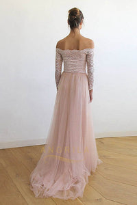 Off-the-Shoulder Long Sleeves Lace & Tulle Wedding Dresses