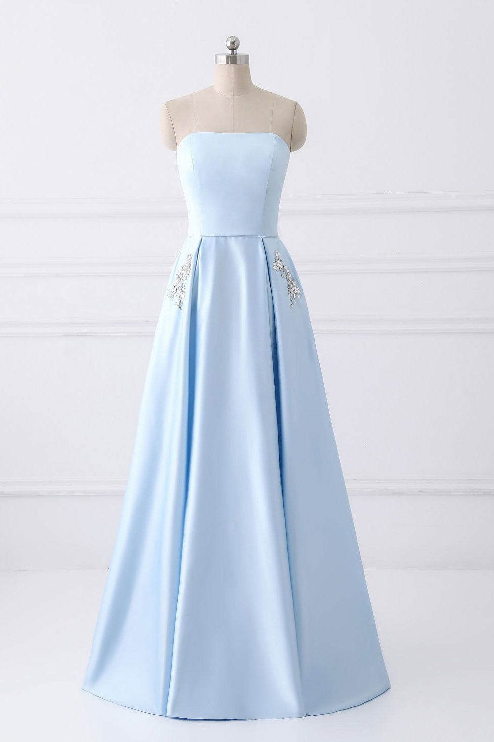 Strapless Stain Prom Dresses with Pockets