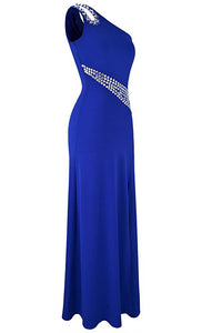 A-Line/Princess One-Shoulder Floor-Length Satin Prom Dresses with Beading