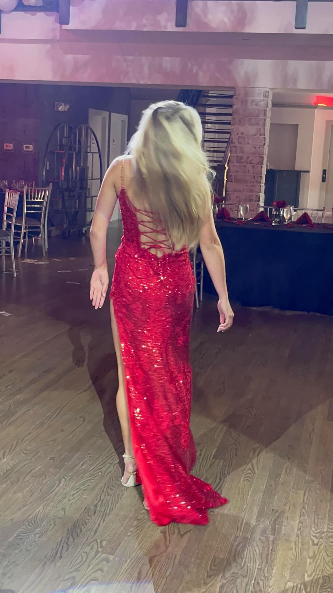 Spaghetti Straps Sequins Appliques Slit Long Red Prom Dress