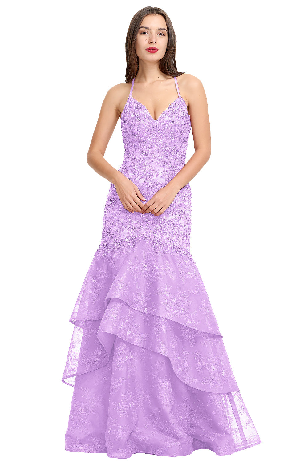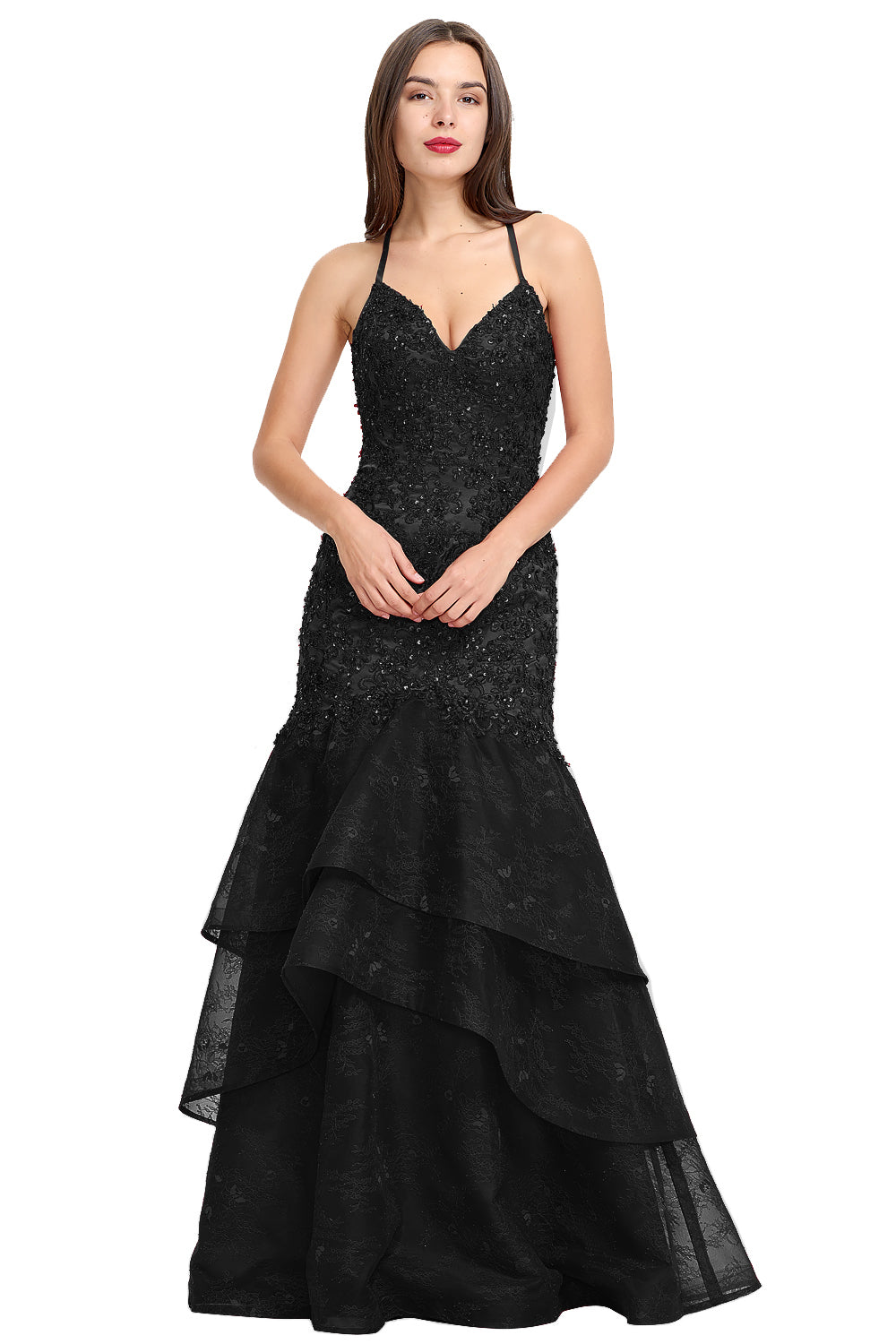 Thin strap V-Neck Mermaid Lace Appliques Prom/Evening Dresses