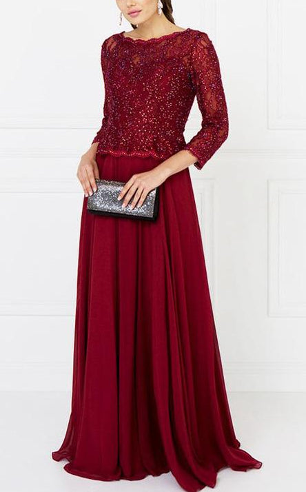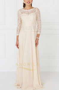 A-Line Scoop Neck Mother of the Bride Dress with 3/4 Sleeves