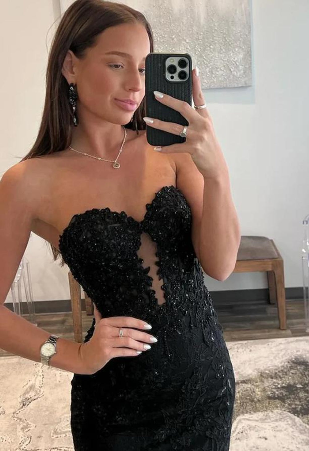 Black Tulle Sweetheart Neckline Lace Appliques Mermaid Prom Dress