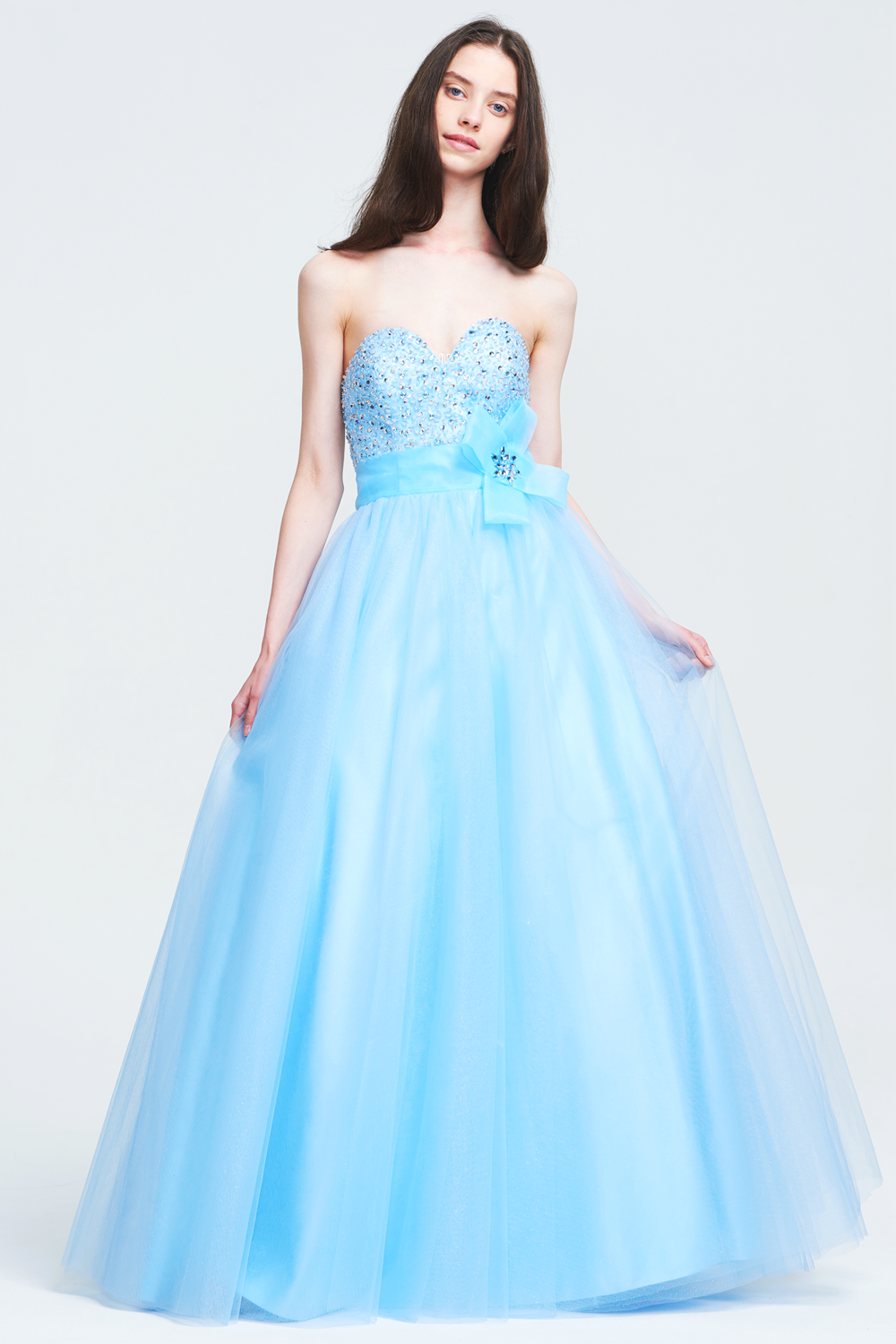 This gown features a sweetheart neckline and a voluminous tulle skirt. The beaded bodice and decorative bow at the waist add elegance, while the lace-up back design enhances its allure.