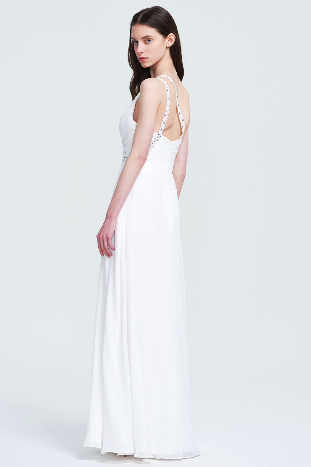 Back Details: Open back with crisscross beaded straps