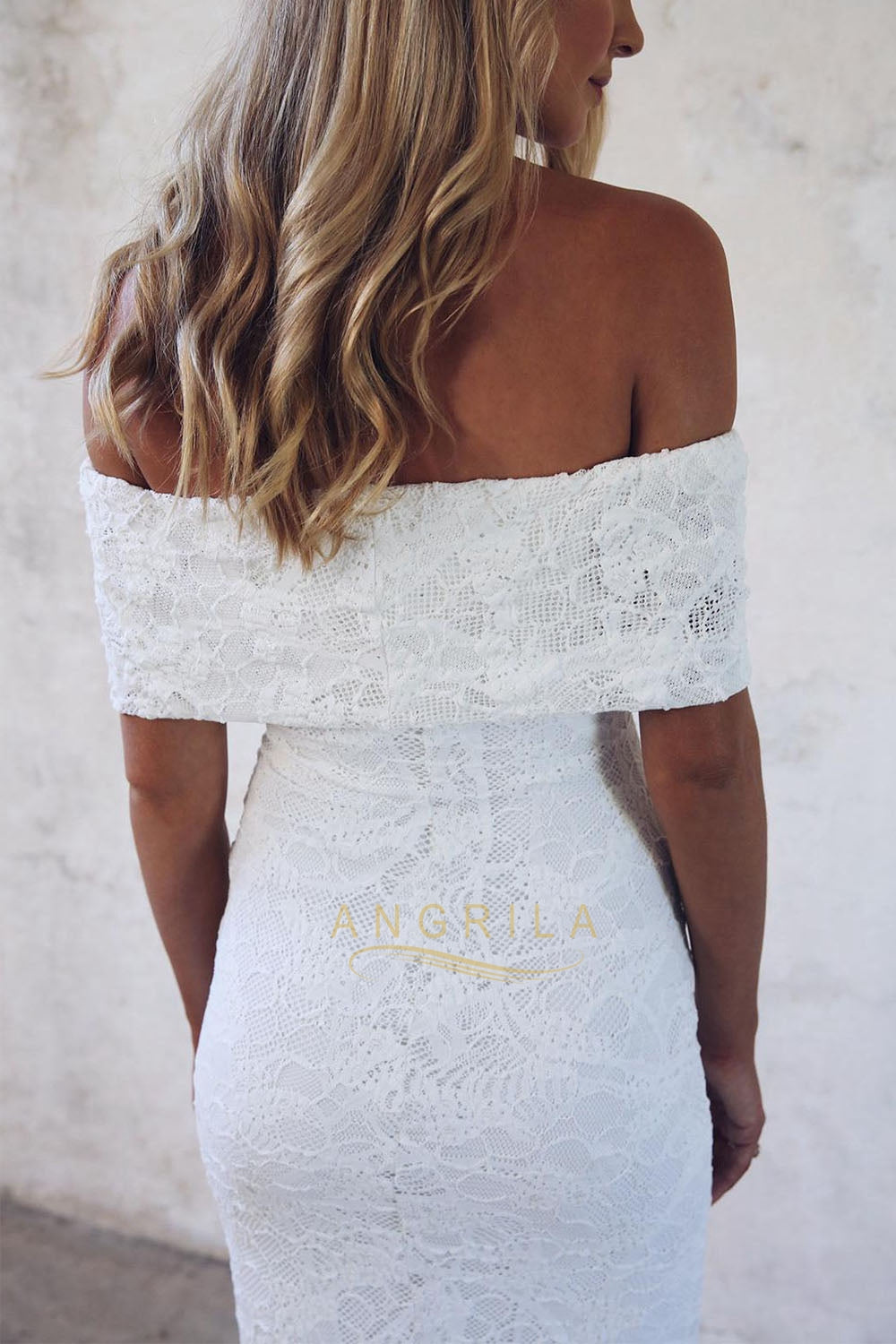 Charming Off-the-Shoulder Sheath Lace Wedding Dresses