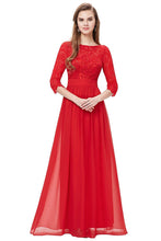 A-line/Princess 3/4 Sleeves V-back Lace Chiffon Long Bridesmaid Dresses