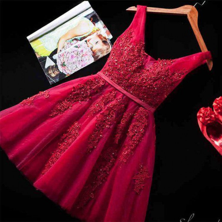 A-line Sleeveless Lace Appliques Short Tulle Prom Dresses