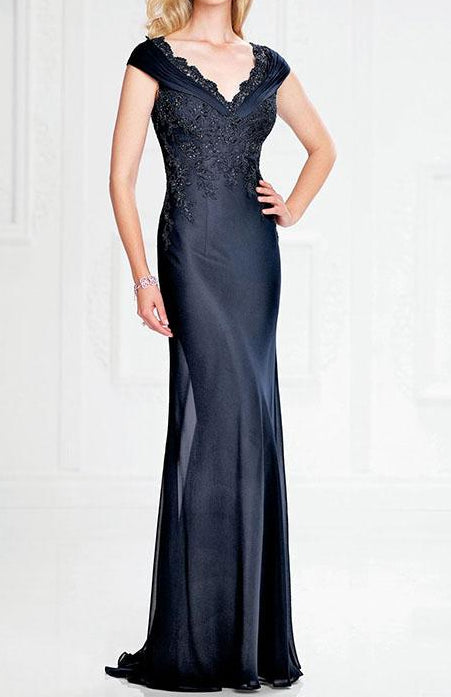 Chiffon V-Neck Mother of the Bride Dresses with Cap Sleeves
