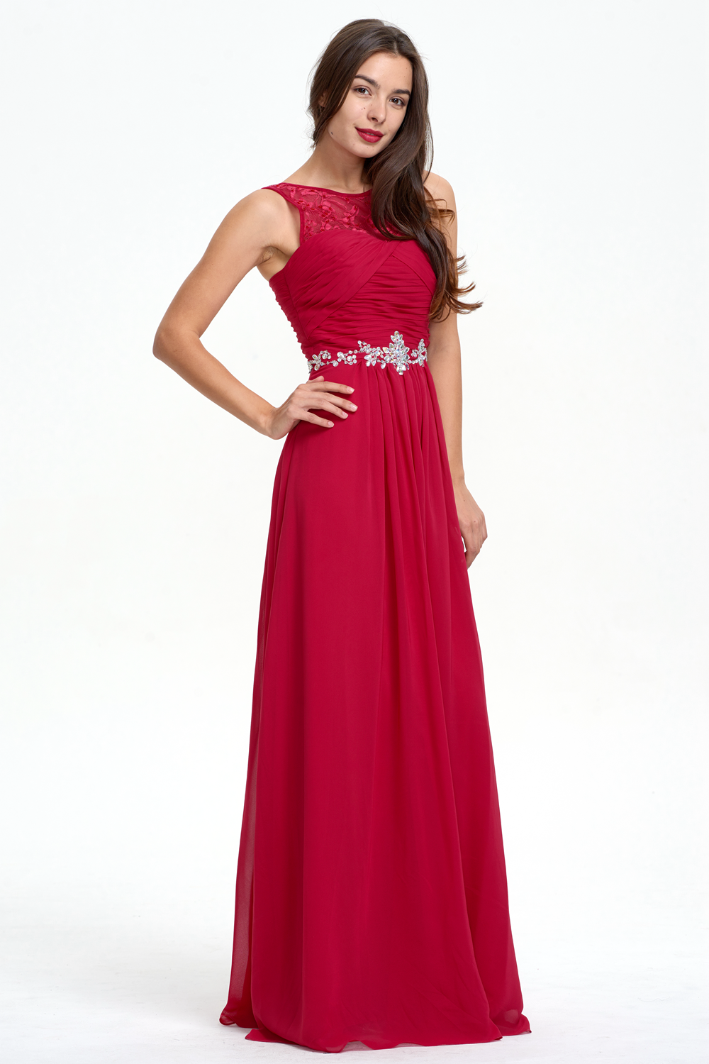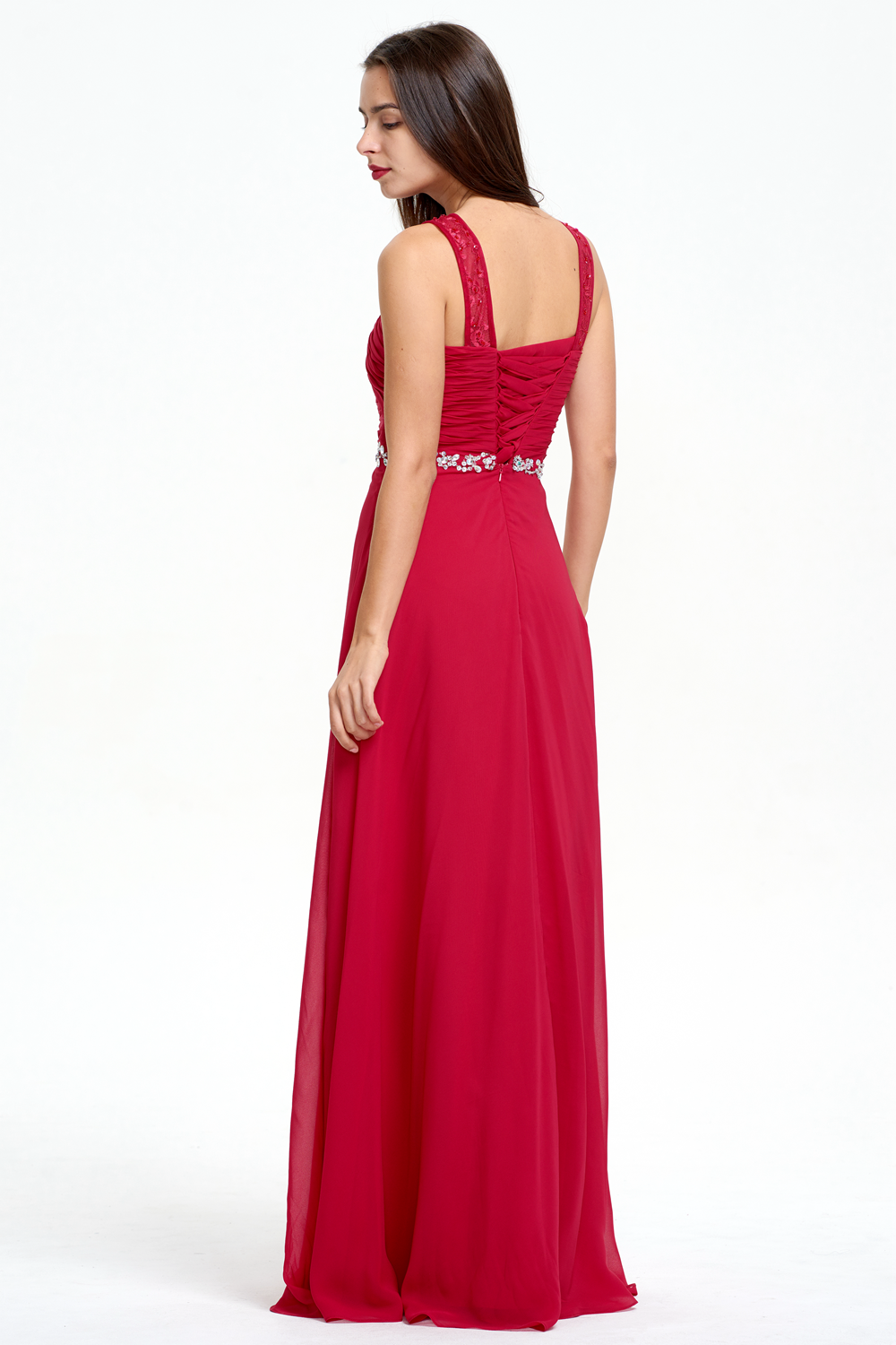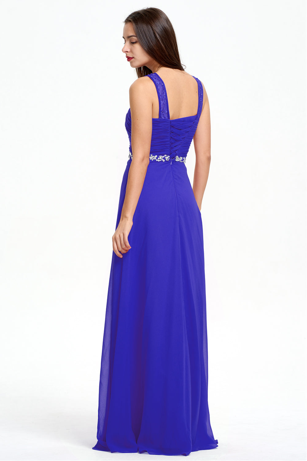 Classic A-line Sleeveless Zipper Chiffon Prom Dress With Beading