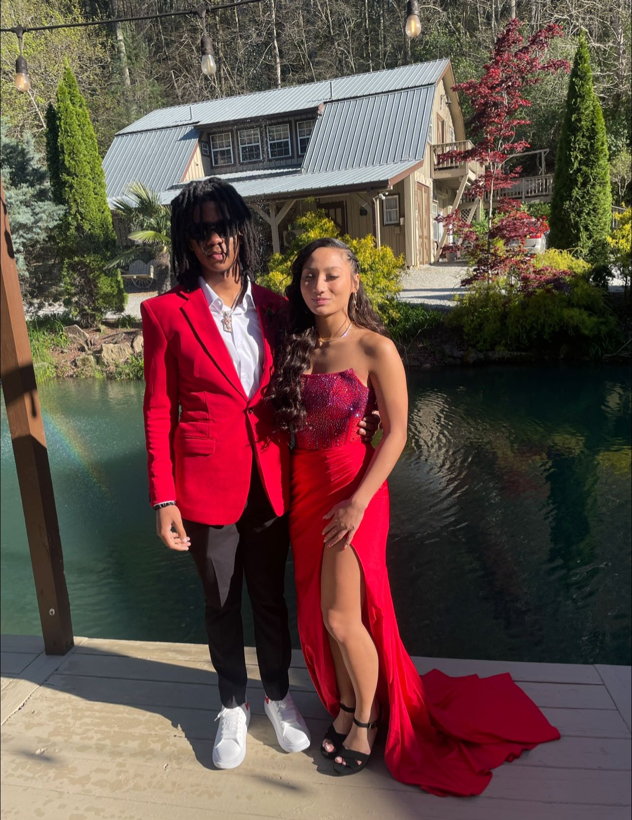 Red Strapless Corset Long Satin Evening Dresses With Slit